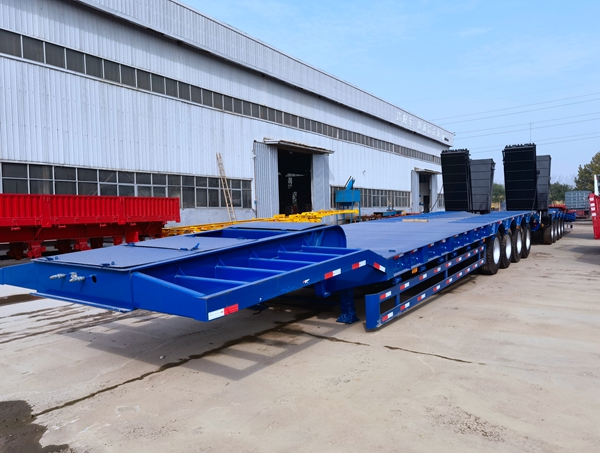 低平板半挂车车架货台主平面低,确保了运送的稳定性,适宜运载各种工程机械、大型设备和钢材等。