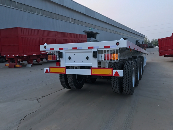 平板半挂车具有较大的运输能力和灵活性,能够满足不同型号的货物运输需求。平板半挂车不需要拆卸货箱或围板,装卸货物更为方便快捷,高效率。